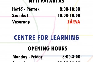 Az Ünnepek alatt a Tudásközpont nyitvatartása az alábbiak szerint változik.